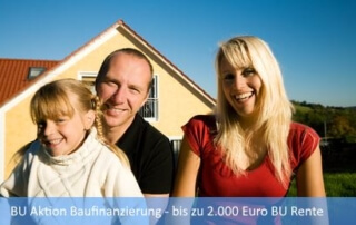 Der Aktionsantrag muss innerhalb von 3 Monaten nach Abschluss einer Finanzierung (mind. 50.000 Euro) eingereicht werden. Bis zu 2.000 Euro BU Rente können gegen vereinfachte Gesundheitsprüfung versichert werden. (mehr …)